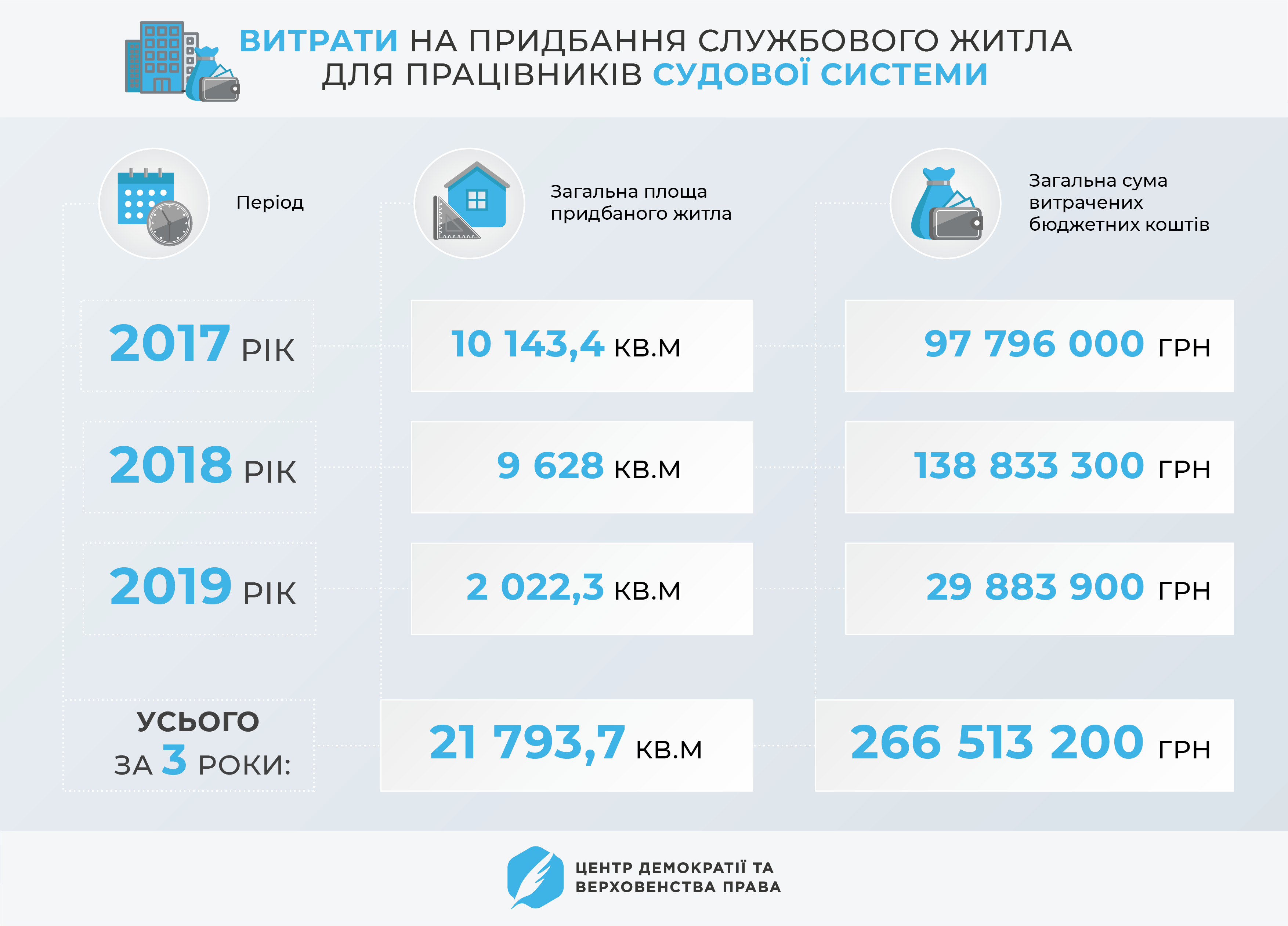 Проте протягом 2017-2019 років здійснювалися значні видатки на закупівлю службового житла.
