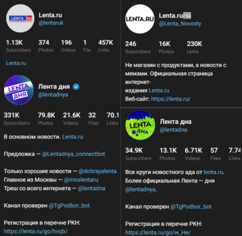 Канали мають уніфіковану назву, активно крос-постять матеріали один одного й поширюють однотипний контент із різними мовними локалізаціями.