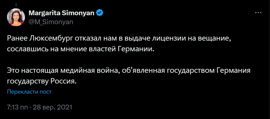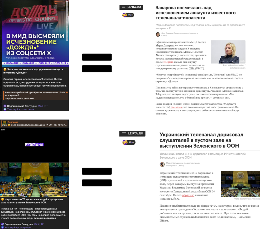 Показовим є поширення через цей канал публікації Марії Захарової під назвою «Світовий лідер чорної трансплантології: в Україні органами торгують і в онлайні, і в офлайні», яка містить неправдиві твердження та повністю відповідає пропагандистським наративам РФ. Таким чином одночасно просувається власний порядок денний та популяризуються російські підсанкційні пропагандистські ресурси.