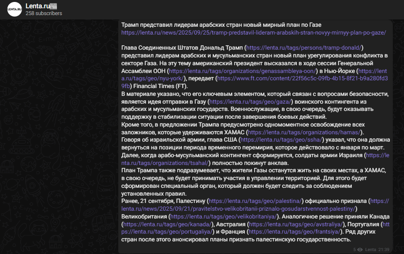 Приклад forward from РИА Новости доступний на сторонньому Telegram-каналі