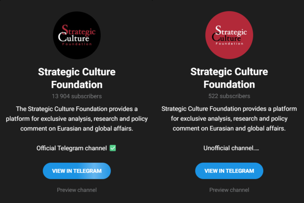 Поширення матеріалів через платформу Telegra.ph також характерний для Strategic Culture Foundation. Адже SCF внесено до санкційних списків як у ЄС, так і у США.