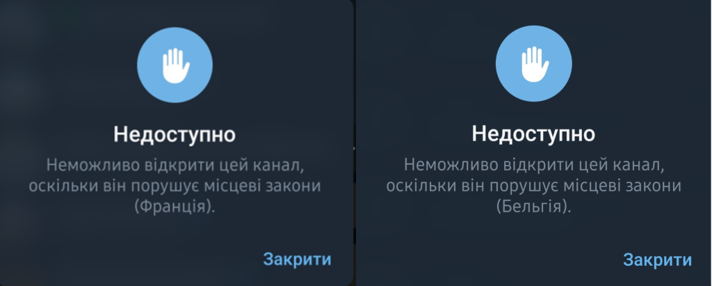 3) Ми перевірили доступ до кожного з цих Telegram-каналів з території ЄС, зокрема Польщі. Тестування проводилося з використанням польської IP-адреси та мереж місцевих інтернет-провайдерів (без застосування VPN).