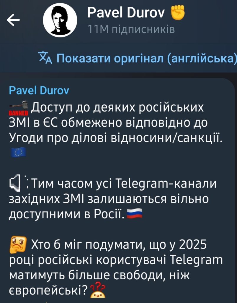 Блокування самого каналу виявляється недостатнім, адже його контент можна переслати на інший канал без жодних технічних перешкод. У результаті користувач отримує повний доступ до матеріалу, навіть якщо оригінальний канал перебуває під санкційними обмеженнями та заблокований.