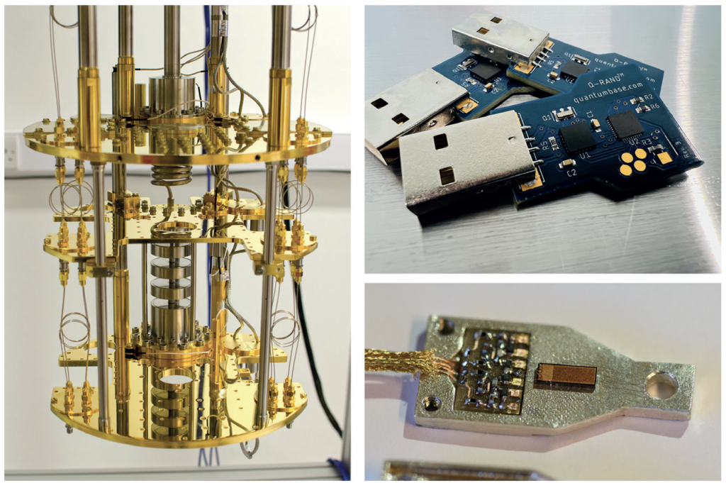 Пристрій квантового обчислення (ліворуч), квантові сенсори (внизу праворуч) та пристрої безпеки (вгорі праворуч).