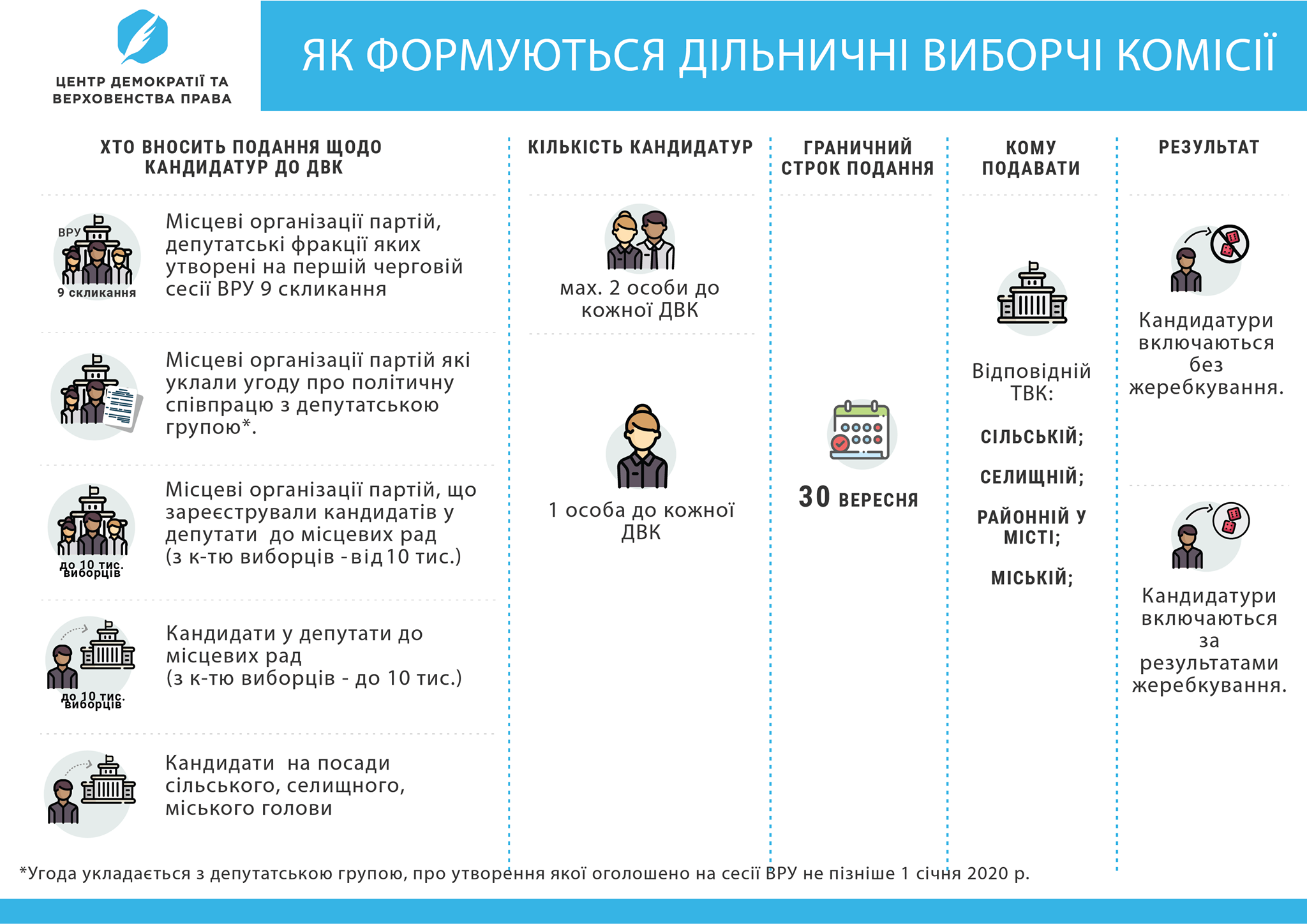 Центр демократії та верховенства права підготував серію публікацій про виборчі комісії на місцевих виборах. Ви дізнаєтеся про те які вимоги висуваються до членів виборчих комісій, якими правами, обов’язками та повноваженнями вони наділені, як виборчі комісії працюють, а також як оплачується праця членів виборчих комісій. З першої частини ви дізнаєтесь про роль виборчих комісій на виборах, як вони утворюються та які в них повноваження.