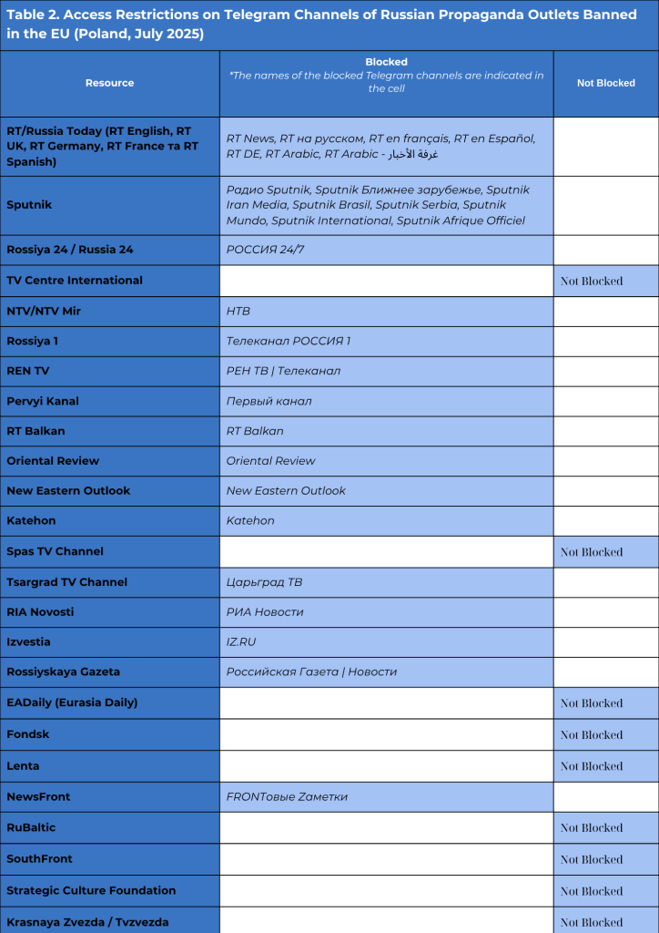 For example, a 2025 BBC study provides examples of how internal Polish-language Telegram channels often copy or quote content from Russian state information resources, such as RT and Sputnik, which are banned in the EU.