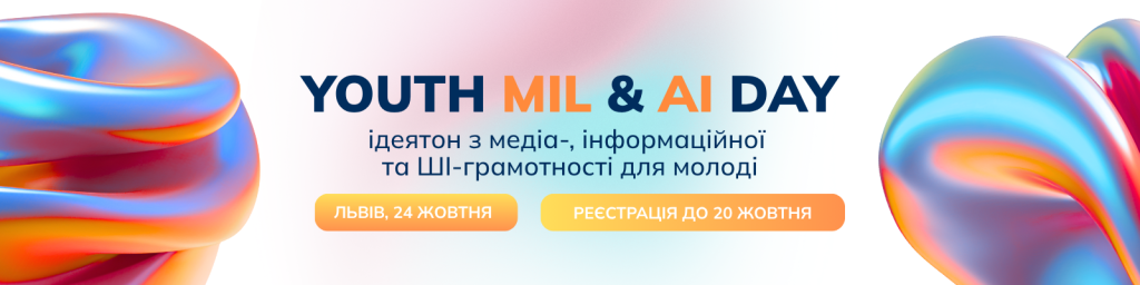 24 жовтня 2025 року у межах Глобального тижня медійної та інформаційної грамотності ЮНЕСКО ми збираємо понад 100 молодих лідерів та лідерок з усієї України на Youth MIL and AI Day.