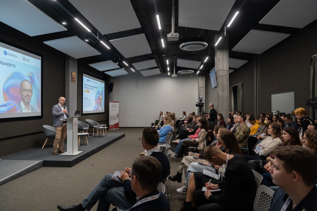 Ключовим промовцем заходу був Олексій Молчановський, директор з інновацій Українського католицького університету, старший викладач кафедри прикладної математики та статистики УКУ, голова Експертного комітету з розвитку сфери штучного інтелекту в Україні при Міністерстві цифрової трансформації України (TBC). Він виступив із промовою: “Ключі до нової реальності: молодь, ШІ та MIL”.