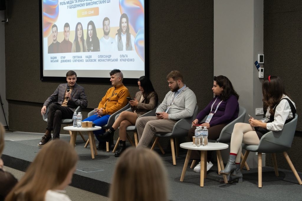 На панельній дискусії “Критичне мислення vs. Алгоритми: роль медіа та інформаційної грамотності у щоденному використанні ШІ” промовці обговорили, чому в епоху штучного інтелекту зросла необхідність у медійній та інформаційній грамотності, і яку роль ці навички відіграють у щоденному використанні штучного інтелекту. А також як ШІ змінив наші підходи до споживання інформації, створення контенту.